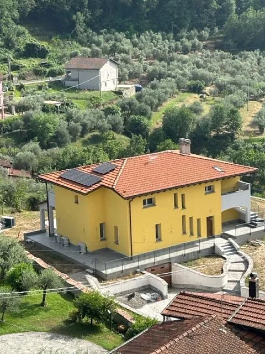 L’immobile dispone di impianti moderni quali riscaldamento a pavimento in pompa di calore con supporto di impianto fotovoltaico da 26 KW. L’appartamento principale (PT) : comprende un ampio soggiorno con camino centrale marca ”PIAZZETTA”, due ampie vetrate con vista sulla vallata, porta a vetri scorrevole 2 ante “CASALI” che divide il soggiorno dalla cucina abitabile.